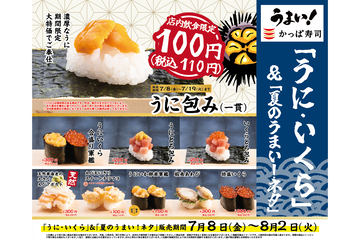元気寿司/魚べい、うに海苔包み/天然南まぐろ赤身が110円!「夏の旨ネタ得ネタ祭り」