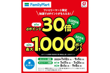 「ファミリーマート限定!dポイントキャンペーン」抽選で最大1000ポイントがもらえる