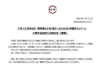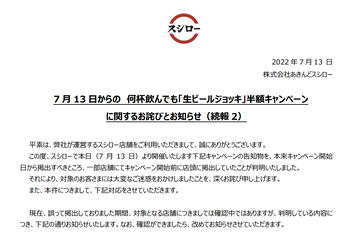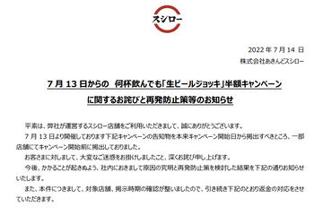 スシロー、開始日の明記がない告知物のフライング掲出で謝罪・返金