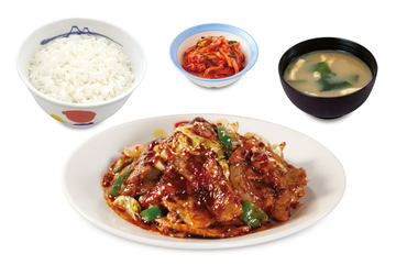 松屋、1日に必要な野菜の半分が入った「回鍋肉定食」。キムチか半熟玉子の小鉢が選べる
