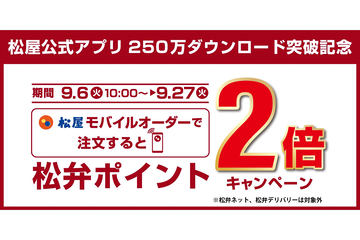 松弁ポイントが2倍!「松屋モバイルオーダー付与ポイント2倍キャンペーン」