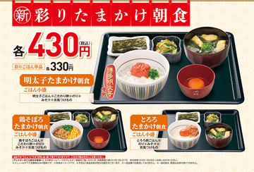 なか卯、明太子/鶏そぼろ/とろろから選べる「彩りたまかけ朝食」シリーズ発売