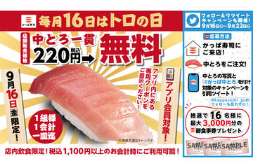 スシロー「お持ち帰りネット予約10%OFFキャンペーン」、10月1日から
