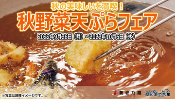 養老乃瀧/だんまや水産、秋の味覚を天ぷらで味わう「秋野菜天ぷらフェア」実施