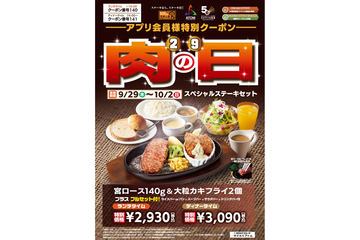 ステーキガスト、“肉(29)の日”限定「ステーキ&ハンバーグ食べ放題」