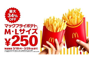 マクドナルド「ポテト」M・Lサイズ“250円”は3月29日まで!