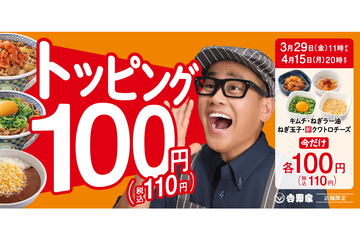 吉野家「トッピング祭」“ねぎ玉子/クワトロチーズ/ねぎラー油/キムチ”が“110円”