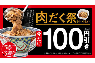 吉野家「肉だく祭」スタート!「肉だく(牛小鉢)」が100円引き