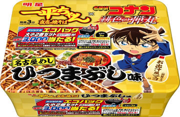 「明星 一平ちゃん夜店の焼そば」が劇場版の名探偵コナンとコラボ、ひつまぶし味に