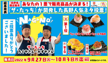 • かっぱ寿司、長野県限定でザ・たっちと開発した3品を提供