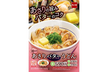 なか卯、殻付きのあさりがたっぷり乗った「あさりバターうどん」2月9日発売