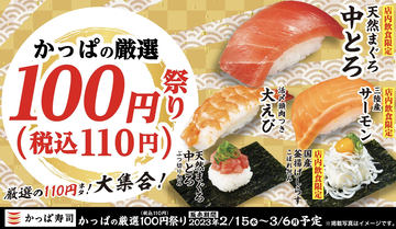 かっぱ寿司、中とろ/サーモン/大えびなどが110円で楽しめる「かっぱの厳選100円祭り」