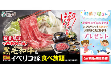 しゃぶ葉、GW限定「黒毛和牛&スペイン産イベリコ豚食べ放題」小学生はランチが1099円