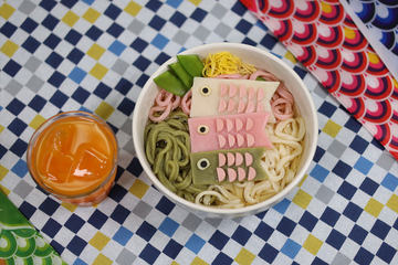 山田うどん食堂“手打ちうどんシリーズ”に中食育キット「こいのぼりうどん」