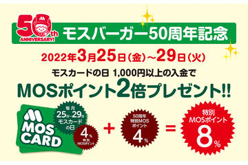 モスバーガー、50周年記念で「MOSポイント2倍プレゼント」