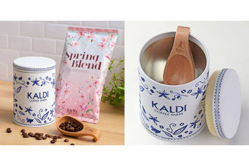 カルディ、陶器の入れ物をイメージした「春のキャニスター缶セット」