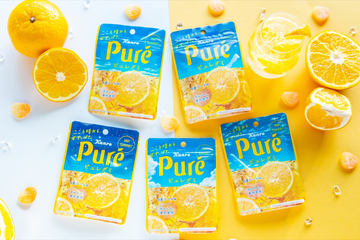 カンロ、「ピュレグミ 甘夏ソーダ」発売。パッケージは5種類の青空