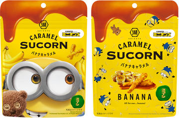 湖池屋、「ミニオン」とコラボした「キャラメル×スコーン バナナキャラメル」