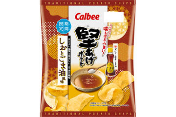 カルビー、かどや「純正ごま油」を使った「堅あげポテト しおとごま油風味」