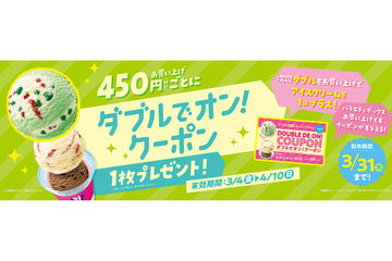 サーティワン、次回ダブルにアイスが1個プラスになる「ダブルでオン!クーポン」キャンペーン