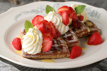 モスのカフェ「マザーリーフ」、“紅ほっぺ”を使ったワッフル/パフェなど発売