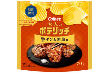 カルビー、グリルで焼いた牛タンの味わいを再現した「大人のポテリッチ 牛タンと岩塩味」