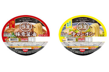 常温で50日間保存できる「鍋焼 日清ラ王 豚骨醤油」「鍋焼 日清ラ王 チャンポン」
