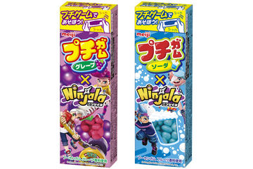 明治、「ニンジャラ」とコラボした限定パッケージの「プチガム」