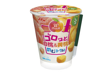 森永乳業、2種の桃の食感を楽しむ「ゴロッと白桃&黄桃のむヨーグルト」9月13日発売
