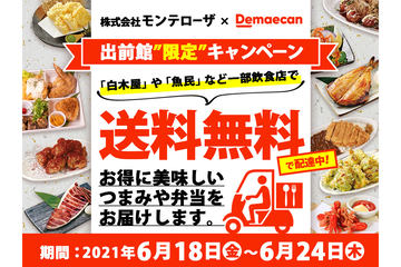 モンテローザ、出前館で送料無料キャンペーン。白木屋/魚民/目利きの銀次/千年の宴など