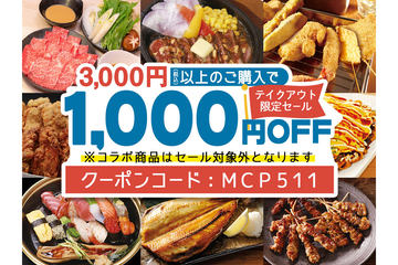 モンテローザ、EPARKテイクアウトで「最大33%OFFキャンペーン」。3000円以上の購入で1000円引き