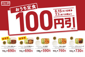 やよい軒、テイクアウト「おうち定食」100円引きキャンペーン