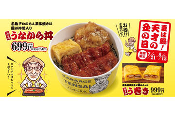から揚げの天才、名物デカからと玉子焼きに鰻が入った「天才のうなから丼」テイクアウト販売