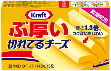 森永乳業、通常の1.3倍の厚さ「クラフト ぶ厚い切れてるチーズ」数量限定