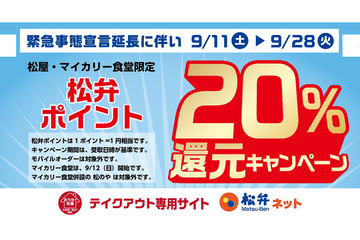 松屋、テイクアウト専用サイト「松弁ネット」で松弁ポイント「20%還元キャンペーン」