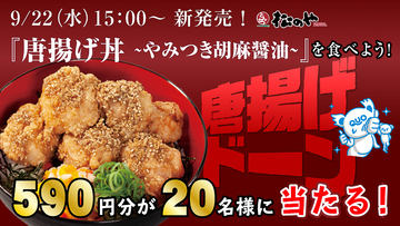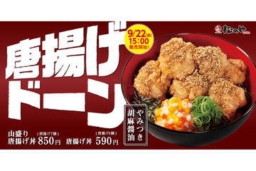 松のや/松乃家、やみつき胡麻醤油味の「唐揚げ丼」「山盛り唐揚げ丼」