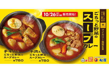 松屋、マイカリー食堂のスープカレーをアレンジした「ごろっと野菜のスープカレー」
