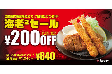 松のや/松乃家、「ロースかつ&海老フライ(2尾)定食」が200円引き!1週間限定