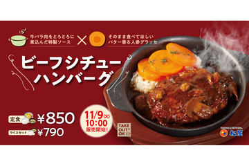 松屋、“黒毛和牛9:黒豚1”の「黒×黒ハンバーグ」12月21日発売。ライス大盛無料も