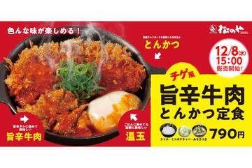 松のや/松乃屋、「とんかつ+チゲ」の鍋「チゲ風旨辛牛肉とんかつ定食」発売