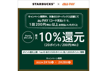 KDDI×スターバックス、au PAY利用で最大10%のPontaポイントを還元