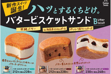ファミマ、「バタービスケットサンド」6月22日発売。ホロっと食感と濃厚リッチな味わい