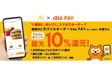 au PAY、「マクドナルド モバイルオーダー」で最大10%のPontaポイント還元