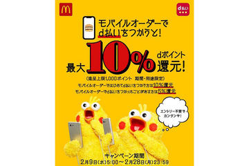マクドナルド、モバイルオーダーで「dポイント」が最大10%還元のキャンペーン