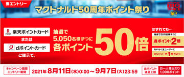 抽選でポイントが50倍になる「マクドナルド50周年ポイント祭り」