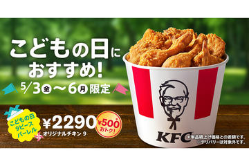ケンタッキー、オリジナルチキンが9ピース入って500円お得な“こどもの日”バーレル発売