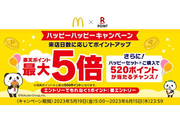 楽天ポイント“最大5倍”もらえる「マクドナルド ハッピーハッピーキャンペーン」