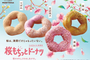 ミスタードーナツ「桜もちっとドーナツ」、今年はつぼみ/五分咲き/満開/葉桜を表現