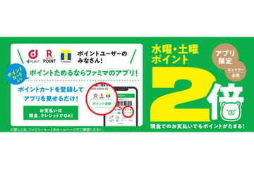 ファミリーマート、「ファミペイ」限定水曜・土曜にポイント2倍のキャンペーン