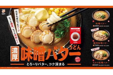 はなまるうどん「味噌バターうどん」3種を発売。濃厚な味噌スープとバターで背徳の味
